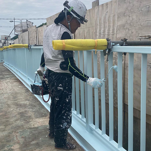 広島市安佐北区で高架橋や歩道橋の塗装を主とする、鋼橋工事を多数経験。今後は外壁塗装・屋根塗装への注力も予定しております。